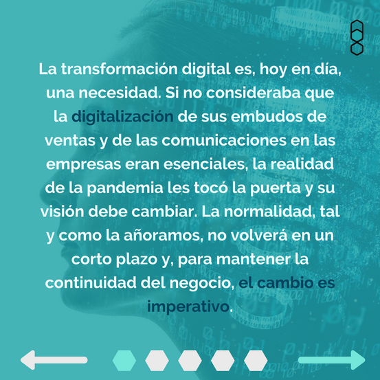 La transformación digital es, hoy en día, una necesidad. Si no consideraba que la digitalización de sus embudos de ventas y de las comunicaciones dentro de su empresa eran esenciales, la realidad de la pandemia le tocó la puerta y su visión debe cambiar. La normalidad, tal y como la añoramos, no volverá en un corto plazo y, para mantener la continuidad del negocio, el cambio es imperativo.