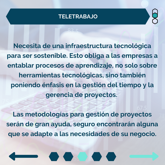 El teletrabajo necesita de una infraestructura tecnológica para ser sostenible. Esto obliga a las empresas a entablar procesos de aprendizaje, no solo sobre herramientas tecnológicas, sino también poniendo énfasis en la gestión del tiempo y la gerencia de proyectos. Sobre este último punto, las metodologías para gestión de proyectos serán de gran ayuda, seguro encontrará alguna que se adapte a las necesidades de su negocio.